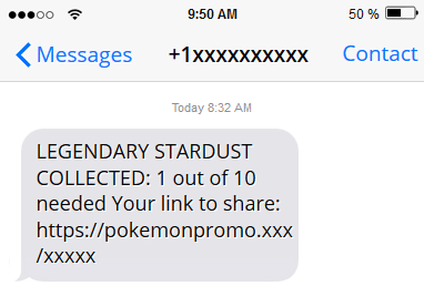The largest Pokémon GO SMS spam campaign we observed were messages sent to subscribers trying to entice them to visit a website called Pokemonpromo.xxx. Thousands of SMS messages containing a URL to this website were sent to North American subscribers. The website is a sophisticated phishing site that closely mimics the real Pokémon GO site. It claimed to provide the user with additional features to the game if they refer 10 of their friends (likely to spam them as well). This website is no longer active and has been flagged as a phishing site.